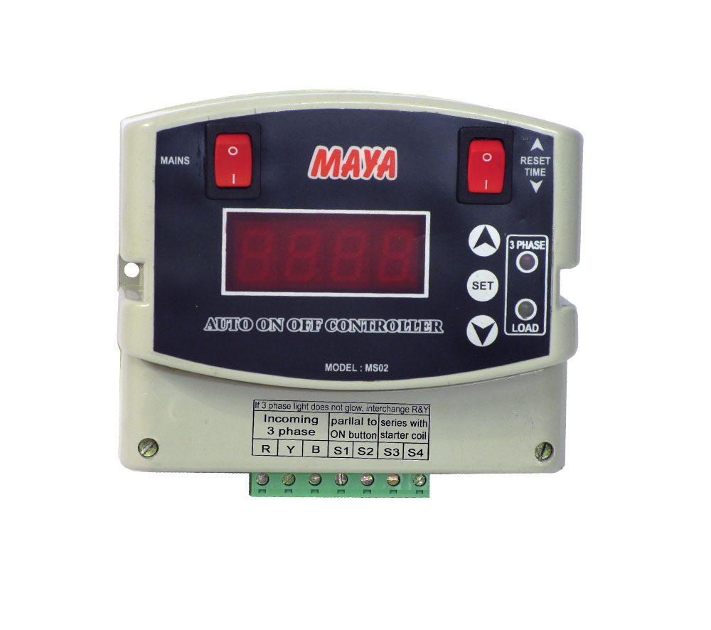 - Motor runs for the set ON time period and stops. Again starts after set OFF time and the process repeats continuously (cyclic)